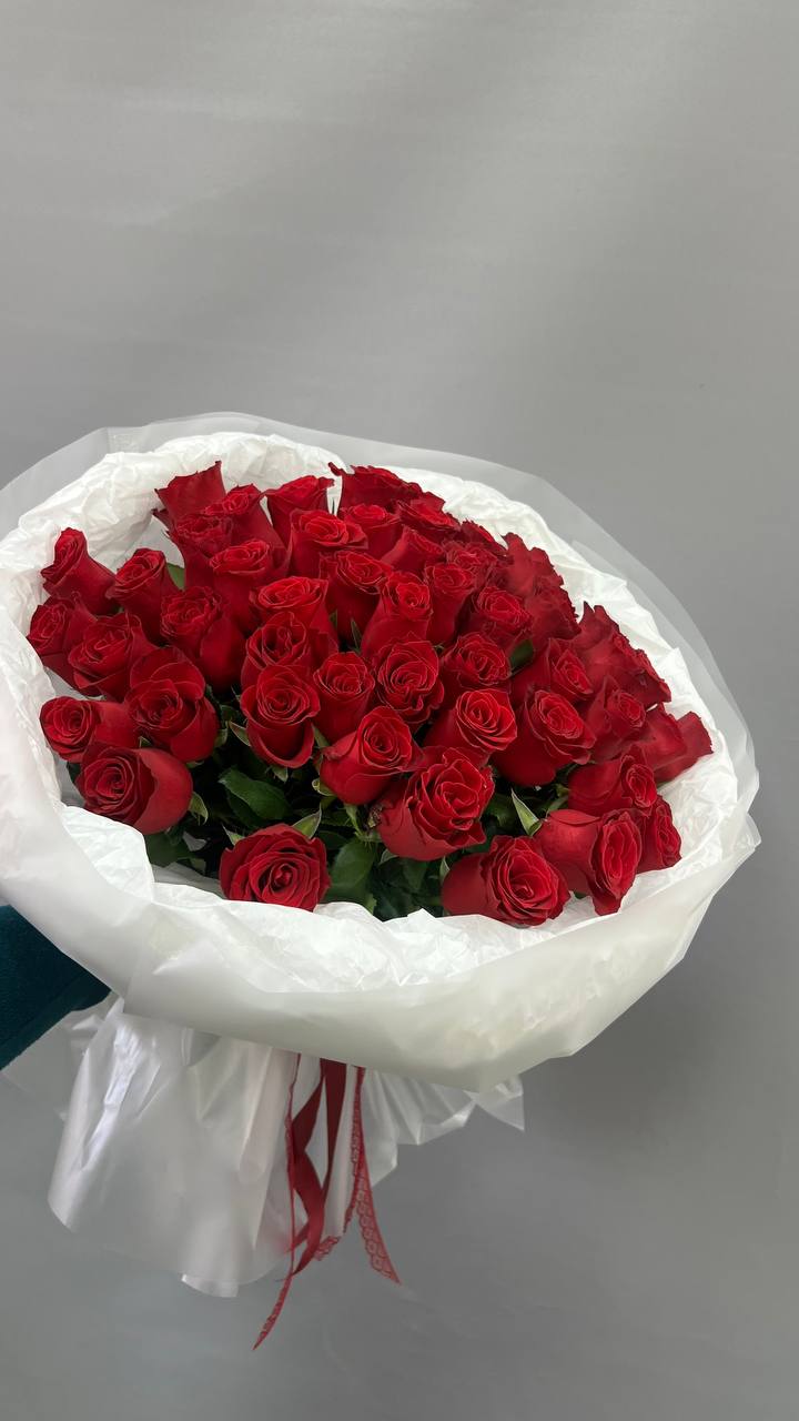 Акция! 101красная роза (сорт Родос 50см)