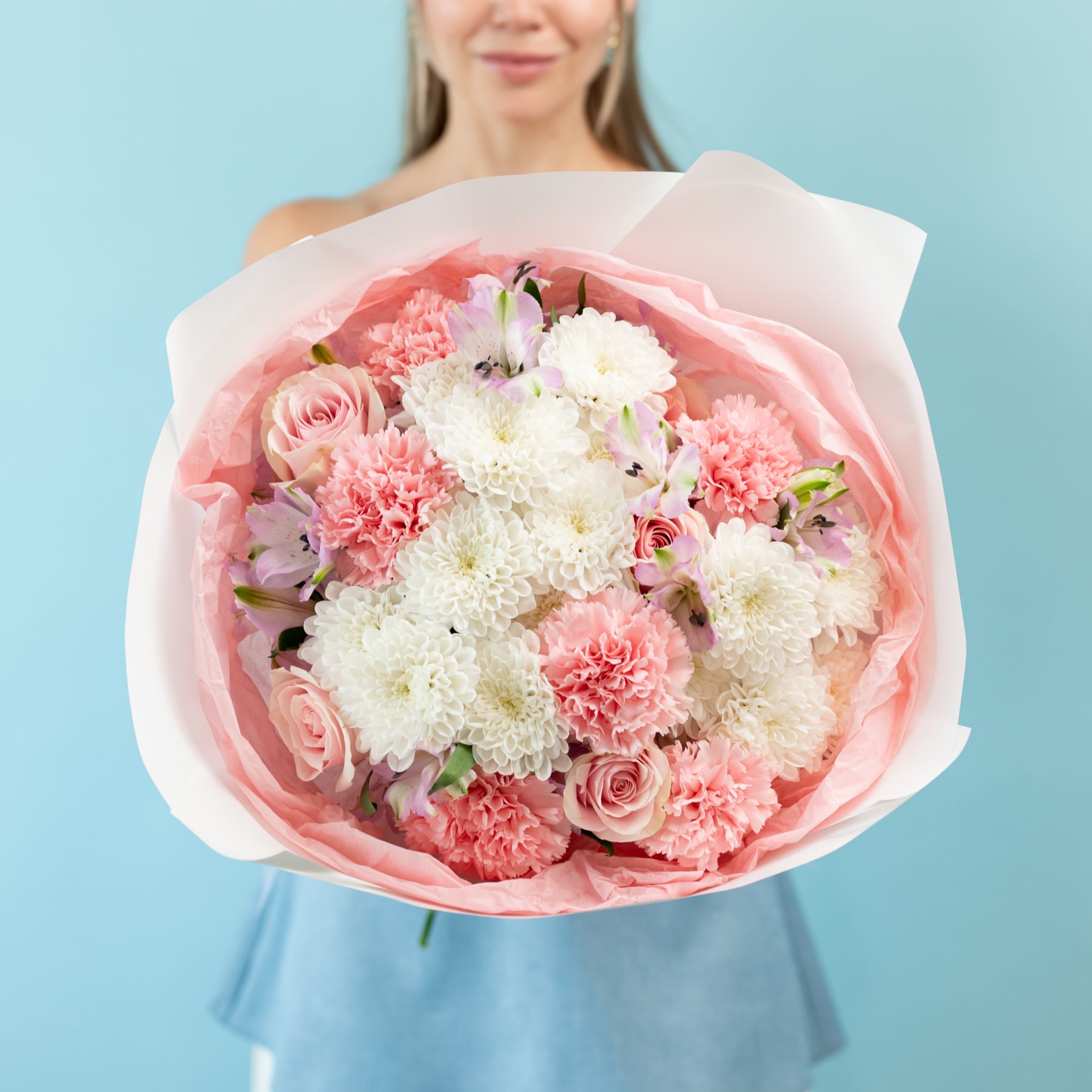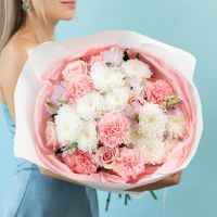 Букет с диантусами и хризантемой