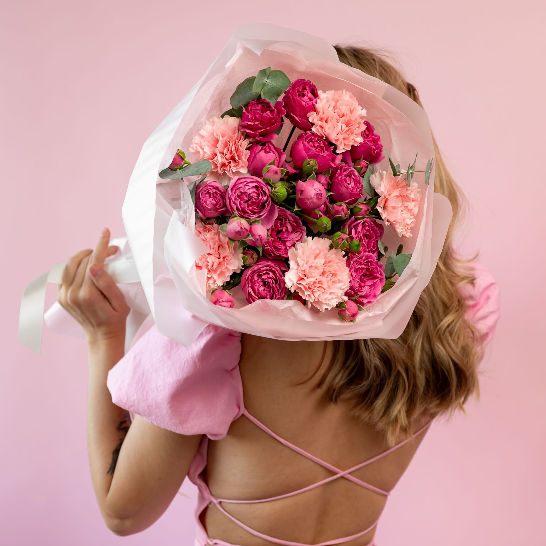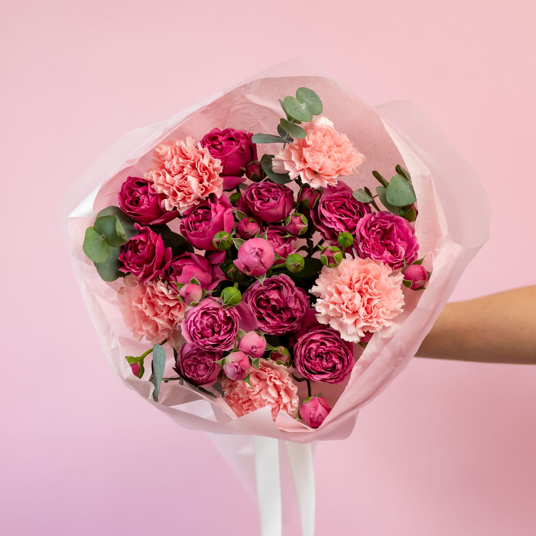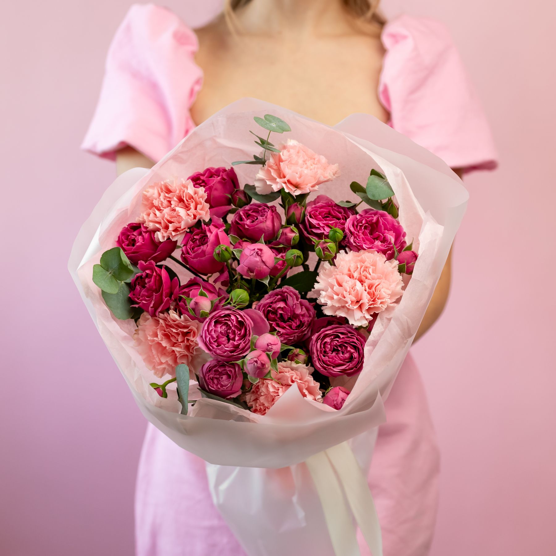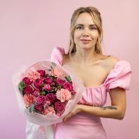 Сборный букет из кустовых роз и диантусов